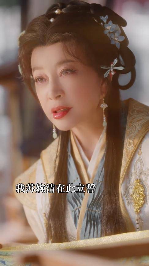 穿着剧中的服饰,既有温婉的感觉,又多了几分灵动,完全看不出真实年龄。